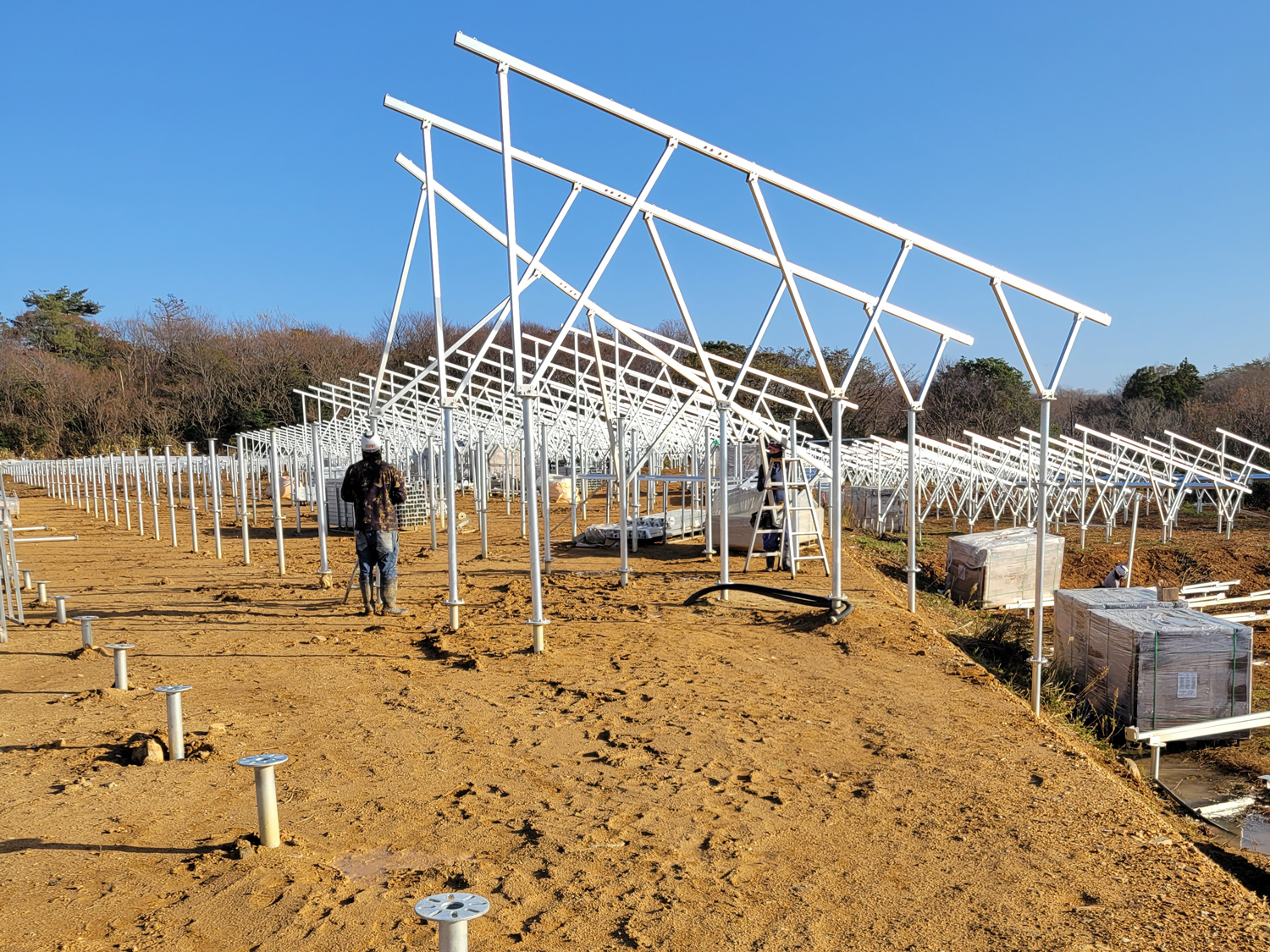 太陽光発電所建設工事を中心に、各種電気工事、造成・外構工事、草刈り、一般産業廃棄物収集運搬業など、幅広い分野で事業を展開しています。
